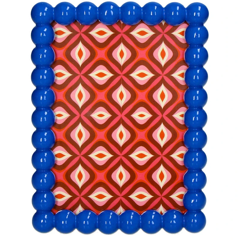A stylish blue photo frame made of polyresin with beads, ideal for adding a chic touch to your interior.
