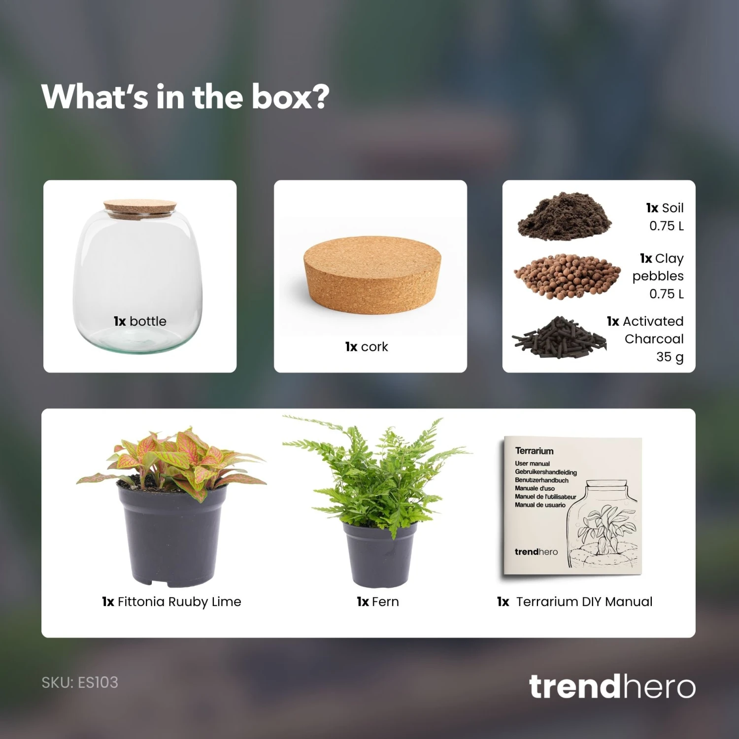 With a plant terrarium, you not only bring a unique eye-catcher into your home but also a piece of tranquility and nature that sustains itself. This mini jungle in glass is perfect for anyone who loves greenery but lacks time or a green thumb. Thanks to the closed ecosystem, the terrarium largely regulates its own water and humidity. Watering is often needed only once or twice a year. This way, you can effortlessly enjoy vibrant greenery without hassle. Place the terrarium in your living room, on your desk, or give it as a gift; it instantly adds atmosphere and a refreshing feel to any space. This way, you can enjoy greenery endlessly and carefree at home or in the office. All the joy, none of the effort! Add this terrarium to your shopping cart and start enjoying your own mini ecosystem tomorrow!